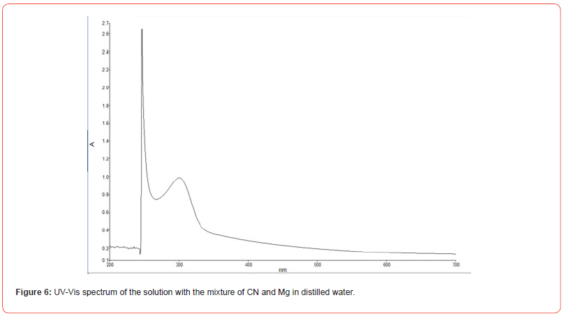 The solutions analyzed by this technique show evidence of the formation of the Me(CN)x—complexes for the metals Au, Ca, Mg, and Cu, while for Iron, the species Fe(CN)6—was identified. Its characteristic position at the corresponding wavelengths coincides with those reported in the literature [12-17]. An example of the spectra obtained is shown in Figure 6, which corresponds to one of the solutions in Figure 4.
