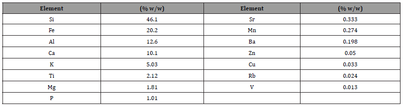 Table 1:Elemental analysis of the mineral sample by X-ray fluorescence.