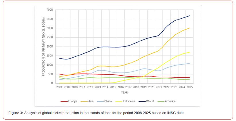 In recent years, the huge increase in demand for nickel has resulted in a surge in its production levels that exceeded 3.5 million tons and expects to exceed 4.000.000 tons next year. Asia is the most important producer and consumer of nickel. Several countries outside China are promoting the production and use of electric vehicles (EVs) to achieve carbon neutrality but lack the self-sufficiency in raw materials that such a transition requires. Today, available data show that in several regions, including the European Union, current production capacity and primary nickel reserves cannot meet the growing demand for nickel. The only European Union country to produce nickel from its own deposits was Greece, where laterite mining and ferronickel production stopped in 2022, though the recent geopolitical situation changes create a new opportunity for the Nickel production in Greece.