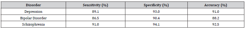 Table 1 reflects the system’s high diagnostic accuracy, as reported by participants using the structured questionnaire. Sensitivity and specificity values show consistent reliability across different disorders.