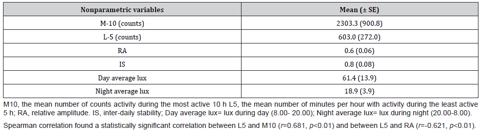 Table 1:Reported nonparametric variables and light exposure determined by actigraphy.