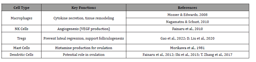 Table 1:Key Immune Cells in the Ovarian Microenvironment.