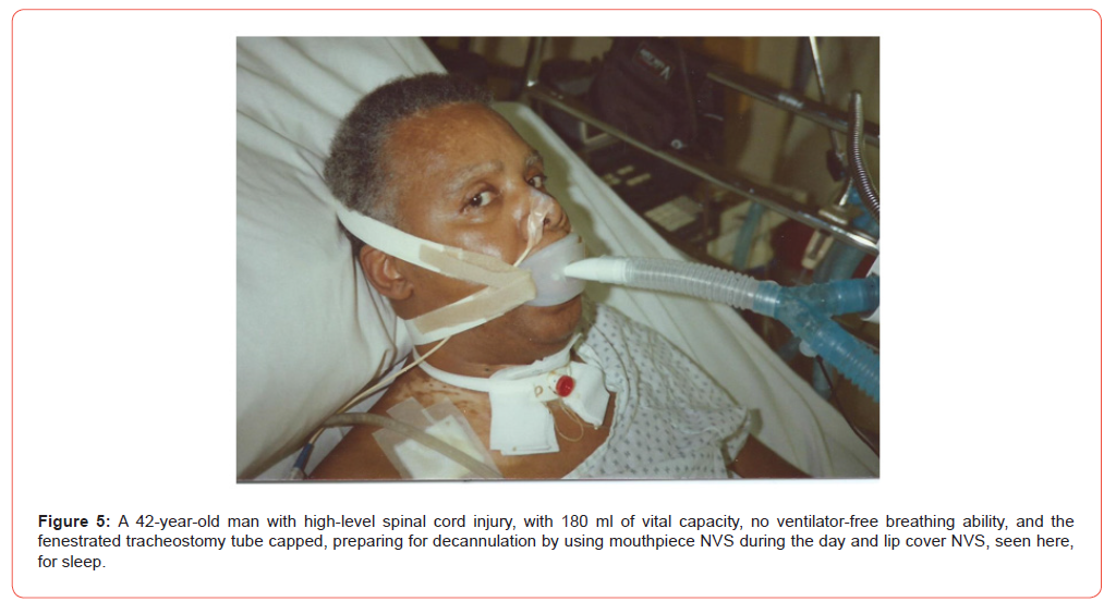 Tracheostomy tubes, on the other hand, typically increase ventilator dependence [1,2,5,7]. Many not using any ventilatory assistance before hospitalization for acute on chronic ventilatory failure remain continuously dependent on (C)TMV until they are decannulated [8], at which point they wean back to their pre-hospitalization regimens of ventilator use, typically sleep mouthpiece/nasal NVS. In 1955 it was pointed out that “every knows” that an Iron Lung user with 500 ml of VC can breathe all day on their own but once trached can no longer breathe at all [5]. The tubes and TMV directly cause the deaths of the 50 to 90% of ventilatory pump failure patients dependent on TMV [1,7,9-11]. We present the use of up to CNVS, instead of CTMV, for long term ventilatory support to avoid the morbidity and mortality caused by the latter.