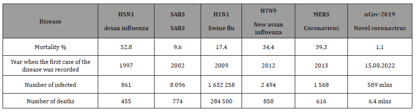 The SARS-Covi-2 coronavirus pandemic characterized an unprecedentedly large number of identified infected people on Earth - from December 2019 to March 2022 - 429,688,379 people (Table 1). Fortunately, the mortality rate (in %) was low (1.4%). However, the number of deaths causes sad emotions (5,917,157 !!) (Table 1).