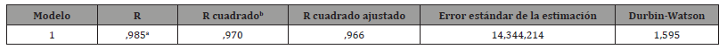 The model obtained for ACE Index explains 98.5% of the variability with an error of 143.44. The Durbin Watson statistic is close to 2, so we are faced with a model that can describe the data since there is no autocorrelation in the residuals (Table 1).