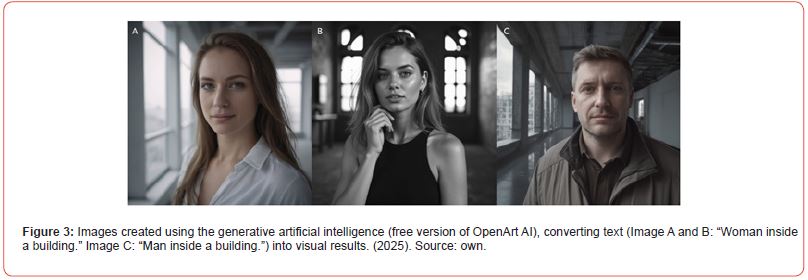 It is possible to generate a realistic image in seconds, more specifically, the time it takes to describe the image we want to create using text. This series of textual descriptions or instructions(prompts) will provide the system with the necessary information to generate the image. As an example, we have generated a series of images (Figures 2-4) in less than sixty seconds using different generative artificial intelligence models: Adobe Firefly 3 (free version), OpenArt AI (free version), and Midjourney 6.0 (paid version). While some people might guess at first glance that these images have been created using artificial intelligence, the variety and rapid growth of available models and tools are enabling a constant improvement in the quality and realism of the images, making this recognition difficult. The same is true for the production of realistic videos generated using artificial intelligence.