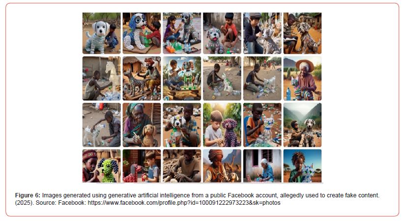 We know that many people use social media for information and that Facebook is one of the most popular social media platforms for adults. However, Facebook and other major social media platforms lack effective measures to regulate and detect misinformation. In fact, Facebook founder Mark Zuckerberg recently announced that he is discontinuing the anti-hoax fact-checking program on Facebook and Instagram, justifying this by arguing that objectively verifying the veracity of content could be considered a form of censorship. He also argued that those tasked with this task tend to incorporate their own biases [7]. In this context, and due to the extremely high speed of propagation, it is advisable, before disseminating any apparently true or legitimate content, to try to determine whether we are dealing with false information, deliberately distorted information, poor-quality content, sensationalist news, hoaxes, etc. To do this, accessing the source, verifying the news, or searching for the origin through other means is vitally important to prevent its amplification on the internet. Sometimes, verifying content is as simple as accessing the account’s public profile and viewing the images displayed. As an example, we show some of the images that can be seen on one of the Facebook profiles that served as our previous example (Figure 5, image C), noting that all of them were generated by artificial intelligence (Figure 6).