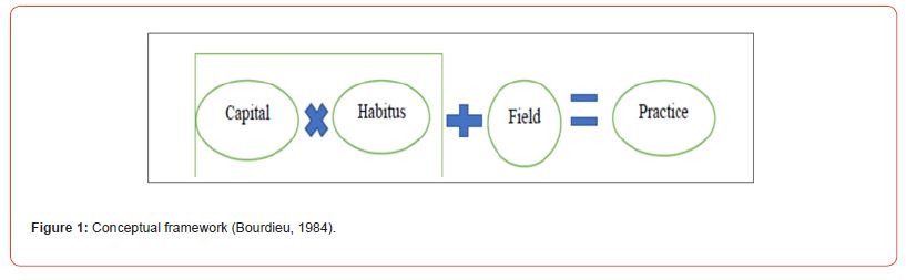 Capital in this paper is dived into social capital (sum of resources that accrue to an individual or a group through networks.), symbolic capital (prestige and wards, status (mentors, committee members, council members and legitimate authority (cultural practice), cultural capital (institutionalized – matric certificate and awards and embodied forms – (accent, habits, tastes mannerisms, style and tastes) that serves as currency that helps navigate institutional culture and economic capital (assets such as computers and property that can be converted into cash).