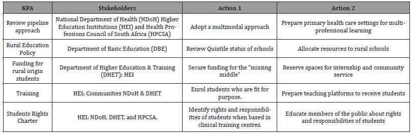 The policy considerations presented in this paper should inform policymakers and educators in developing a fair and just approach to training the future rural workforce. The successful implementation of the key priority areas outlined in Table 1 is expected to contribute to achieving universal health coverage in South Africa and beyond.