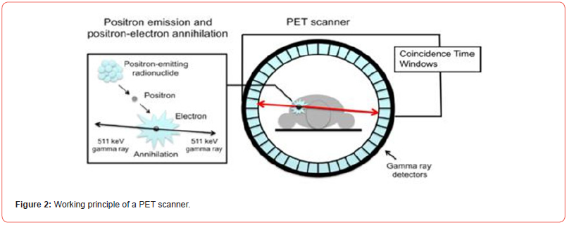 The importance of inorganic scintillators in medical imaging cannot be overemphasized. They find an application in Positron emission tomography (PET): A procedure that allows for imaging of molecular interactions and routes inside the human body [8]. It is an avenue for quantifying biochemical and physiological processes by applying radio-pharmaceuticals like 11C, 13N, 15O and 18F and by measuring the two 511 KeV photon emitted during the annihilation of the positron with an electron of the tissue [9-11].