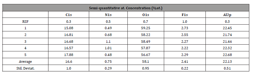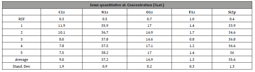 Table 1:XPS after SiN deposition.