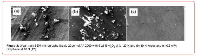 Figure 2 (b) showing the particulate trapped in matrix material even worn at higher load of 40 N confirming the bonding strength of Al2O3 with the aluminium matrix. A frictional mechanism can be understood to explain the relationship between the wear resistance and the material removal of the composites. Enhanced shear strengths of the composites processed by microwave sintering with reinforcements is one of the reasons for the resistance to wear sliding them against the steel disc of 45 HRC. It is also evident that a higher particle weight (wt %) fraction leads to a higher hardness. Similar results have been addressed by zhang et al. [12].