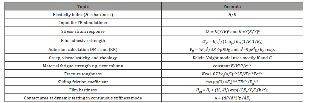 Table 3:Some Applications of Elastic Modulus E, as used for Mechanical Properties of all Solid Materials, Including Viscoelastics with Modulus E instead of Ephys via Differentiation of the Loading Curve.