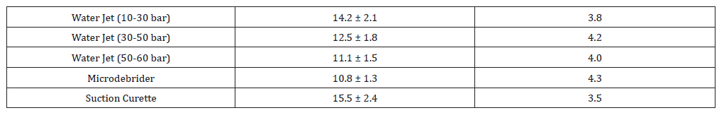 Table 1:Tissue Removal Score (0-4).
