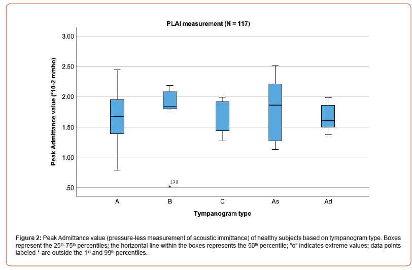 Table 1: Descriptive statistics of PLAI measurements for all 135 healthy subjects (117 ears) depending on the tympanogram type.