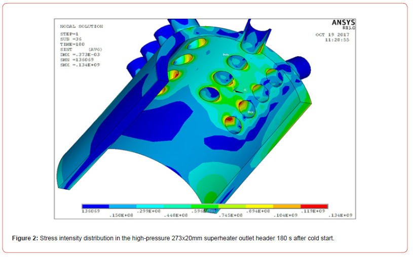 Mathematical modelling occupies a special place in solving reliability justification problems in the power equipment. It is used to design new equipment, to optimize its operating modes, to estimate its residual life and to predict the damage occurrence in highly stressed parts of boilers and turbines. The use of mathematical modelling to search for regularities in the nature of physical processes in power equipment can be demonstrated using the examples of the high-pressure T-295/335-23,5 turbine rotor (Figure 1) and the HRSG high-pressure superheater outlet header (Figure 2) thermal stress state calculation. It was found that the uneven distribution of steam flow through the supply pipelines causes the maximum stress to occur first in the central part of the header. As steam flows through an increasing number of supply tubes, the zone of maximum stress shifts from the center of the header to the outlet. At the same time, the maximum stresses themselves decrease towards the header outlet.