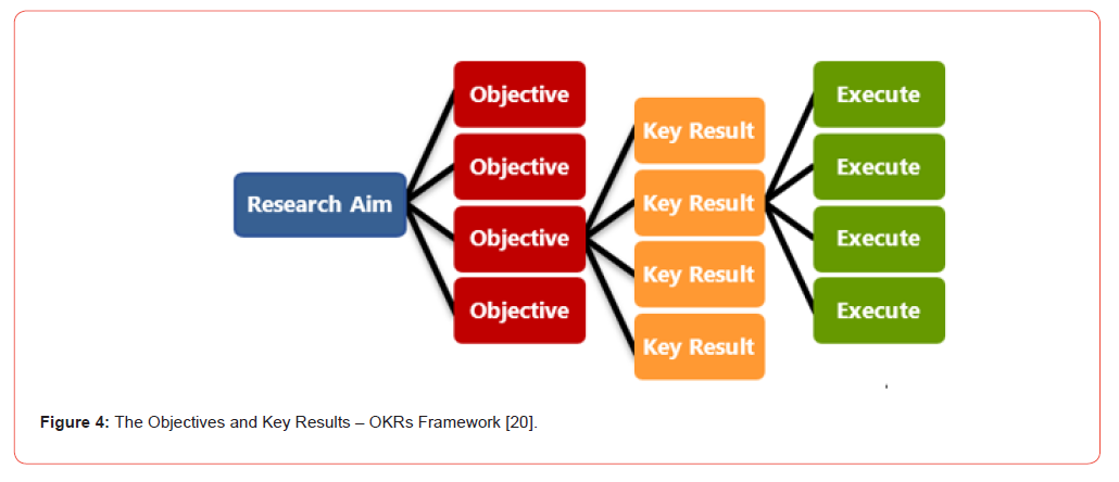 Software development methodology is usually applied to ensure that a set of principles is followed as guidance during the study or software project to design the required models and system strategy diagrams [6-8]. According to Alliance Software [19], Software Development Methodology runs as a framework, process, or series of processes, which can be applied for software development purposes through different phases with steps to launch a software product. Also, the objectives and key results approach, also known as the OKRs framework, is implemented to provide regular checks on priorities, focus on achievements, and allows us to collaborate, communicate and together align tasks [7]. According to Doerr and Page [20], OKRs is a simple goal setting framework using Why? as a concept. OKRs are about Yes, no, and being Simple, which supports focusing on execution and what really matters to measure performance, as shown in Figure 4. Many organisations, such as Google, Amazon, Spotify, Twitter, and Netflix, use OKRs as an instrument to set and align their goals and define their desired results.