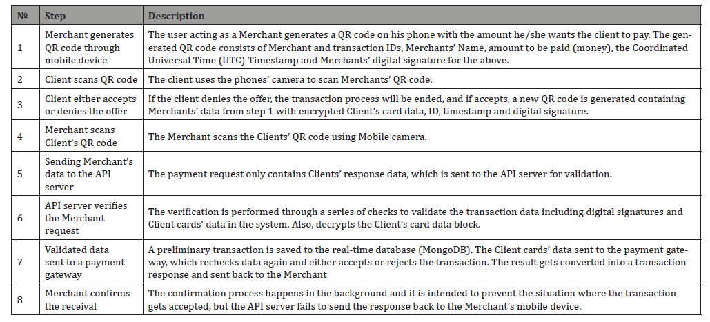 The second Client/Server communication is the payment transaction process (Figure 9). The process uses a Two-phase commits technique [32]. This process consists of 8 steps, which are described in Table 1.