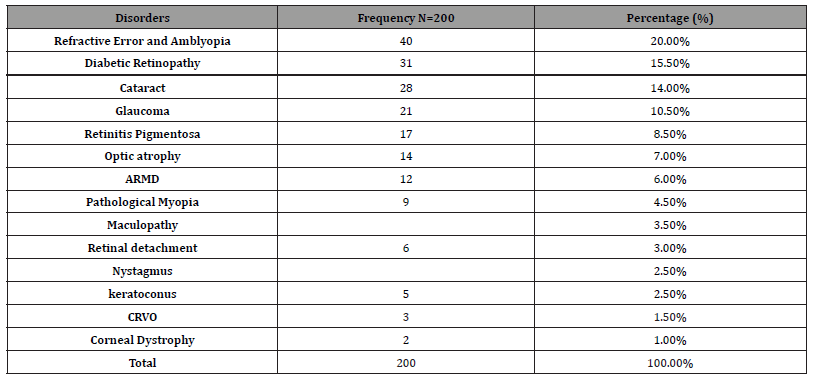 Methodology: A retrospective cross-sectional overview of total 200 patients were observed at BSMMU low vision clinic between January’ 2021