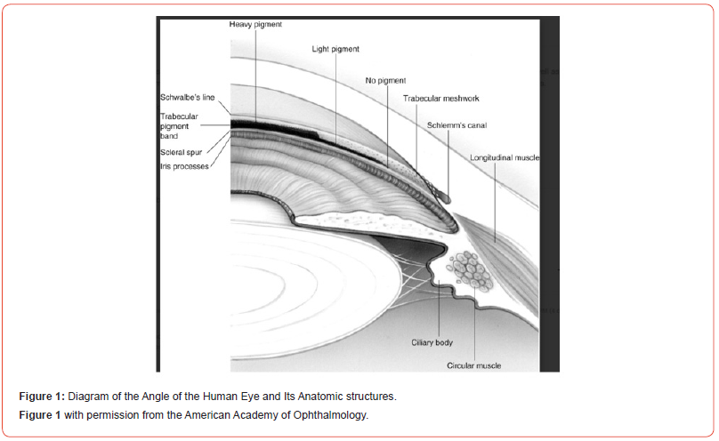 The rationale for this study technique [24] is that while angle closure glaucoma is characterized by appositional or synechiae by the iris over the trabecular meshwork, early angle closure is the only first stage leading to the most severe condition of complete angle closure disease, which may result in irreversible vision loss [24-27]. Therefore, early identification of patients with angle closure glaucoma disease would auger well for early treatment and saving vision. Worldwide 1% of the population have ACG and 3.5% have open angle glaucoma. The majority of both types is often silent, with sudden loss of vision prominent in ACG and gradual loss of vision in open angle glaucoma [26].