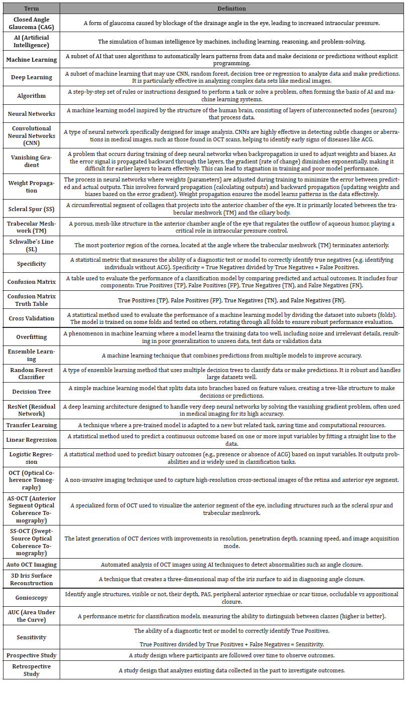 Terms and Definitions Table: Lexicon AI, Data Science and Glaucoma Terms